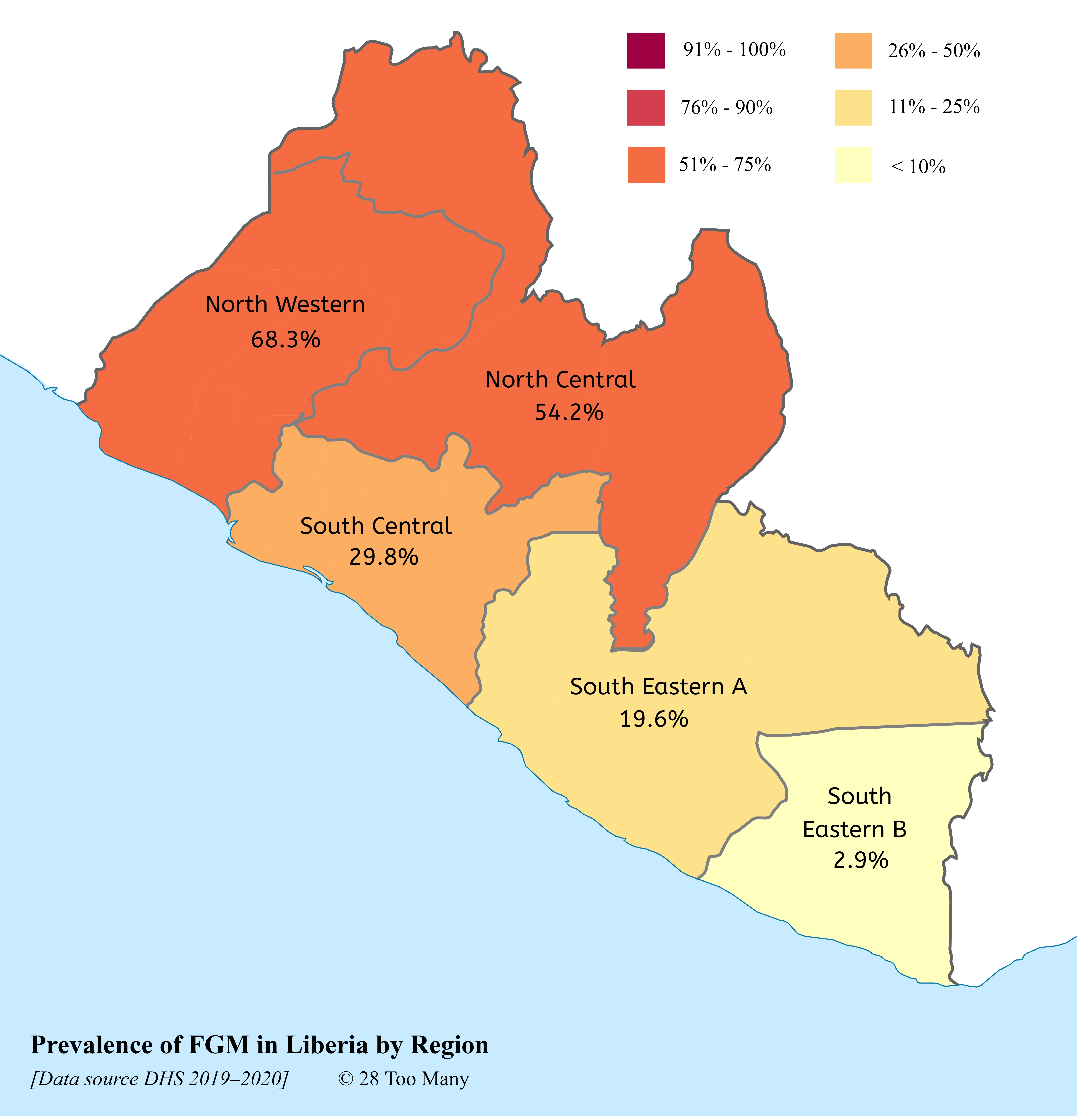 Because of the taboo nature of FGM/C, the country-wide prevalence of FGM/C outside of Sande has not been studied until very recently (in the DHS 2019–2020), and only limited data is currently available.