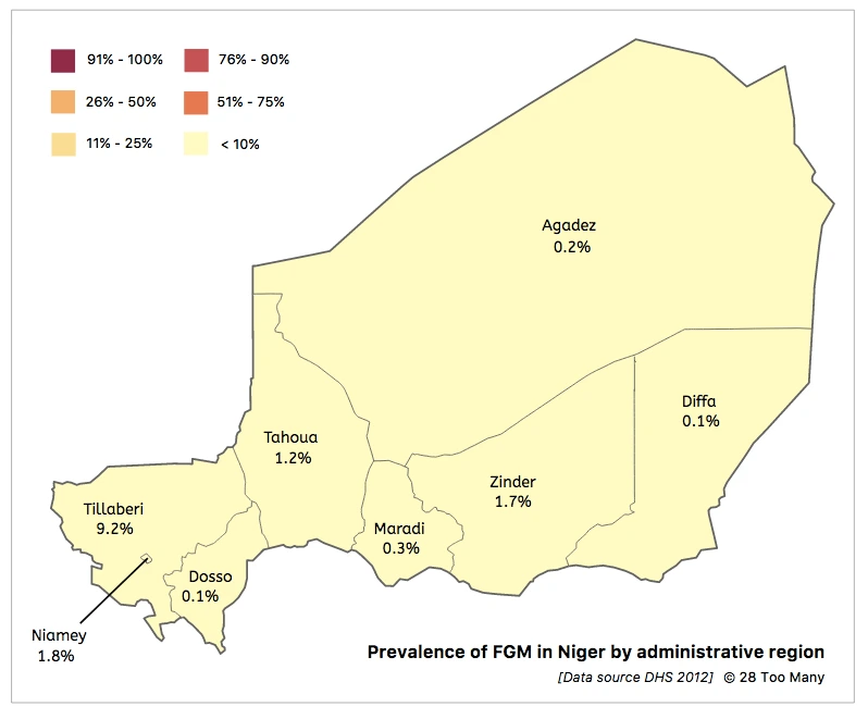 The prevalence of FGM/C among women aged 15–49 in Niger is 2.0%.