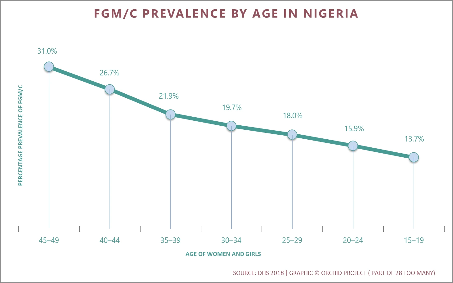 The prevalence of FGM/C among women aged 15–49 in Nigeria is 19.5%.