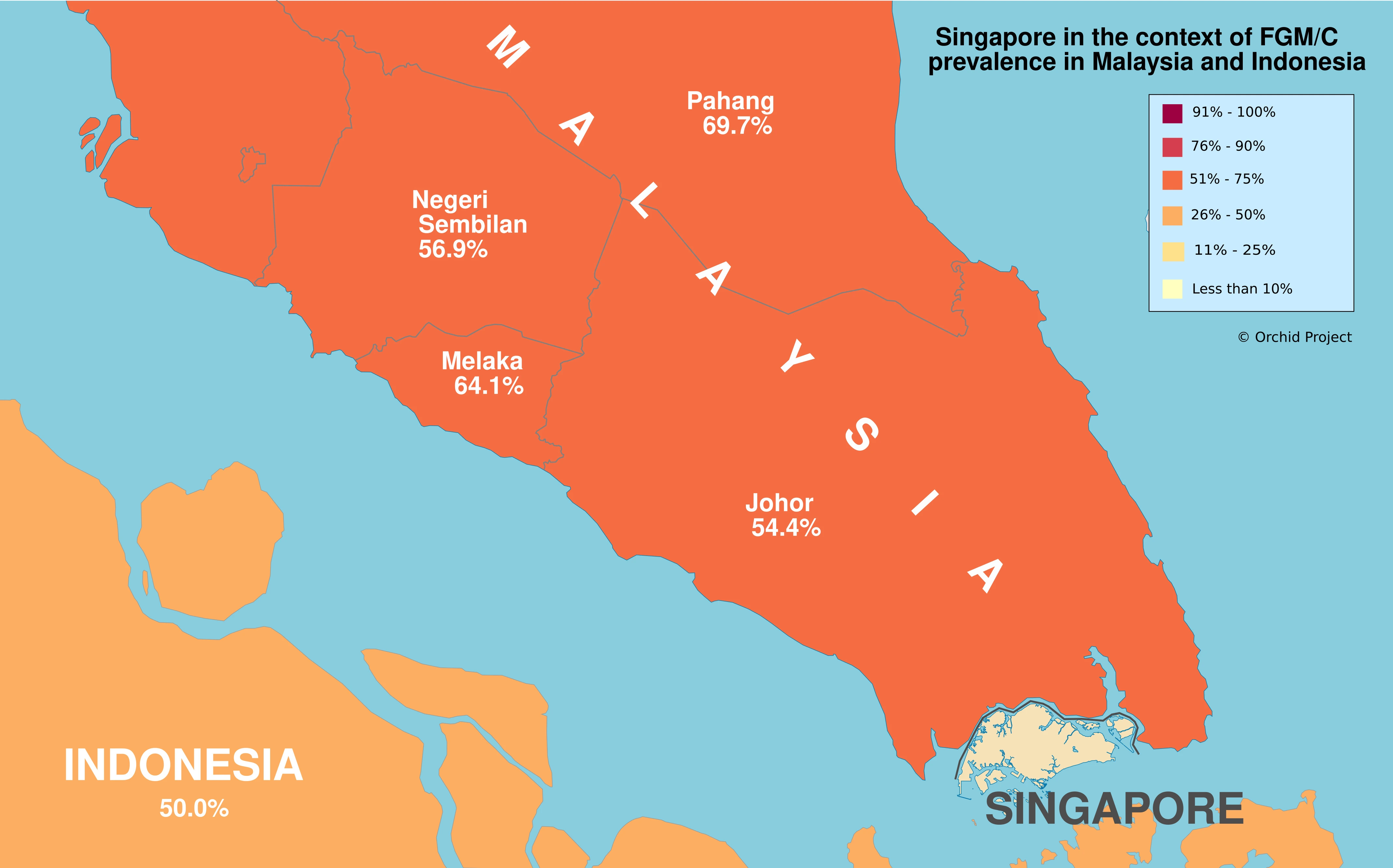 In Singapore, the prevalence of FGC is estimated to be between 75% and 85% among women in the Malay and Dawoodi Bohra communities.