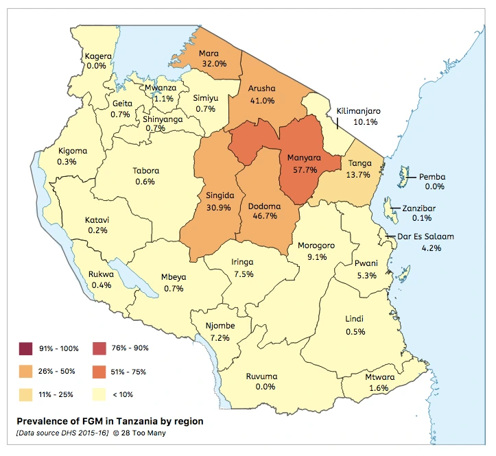 Distribution of FGM/C across Tanzania